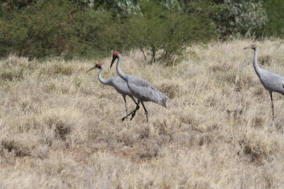 A group of Halls Babbler crossed the road in front of us, and at a creek crossing Cockateil flew up into the trees as we passed. Mixed groups of Woodswallow gathered near Mistake Creek. Emu, Brolga and Australian Bustard kept their distance from the road.